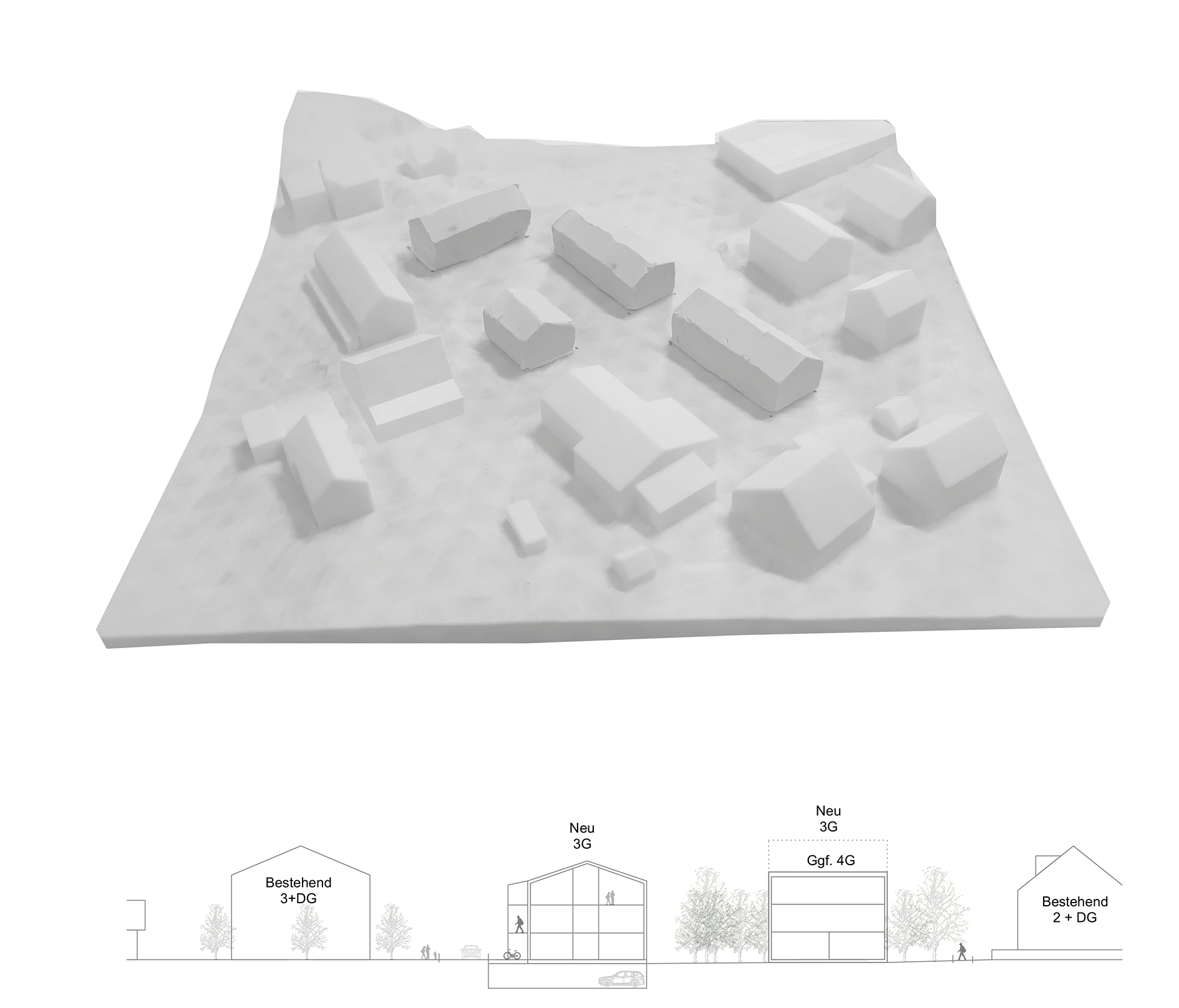 Im Rahmen einer Vertiefungsstudie wurden in Künten drei Areale eingehend untersucht. Dabei standen die Fragen nach geeigneten Nutzungen, Möglichkeiten der Verdichtung, wichtigen Wege- und Grünraumverbindungen sowie weiteren qualitativen Kriterien im Fokus. Aus den Ergebnissen wurden Entwicklungsgrundsätze und Empfehlungen für die Umsetzung in der Nutzungsplanung abgeleitet. Zudem wurde die historische Bausubstanz des Birchmeierareals vertieft analysiert und entsprechende Richtlinien formuliert.