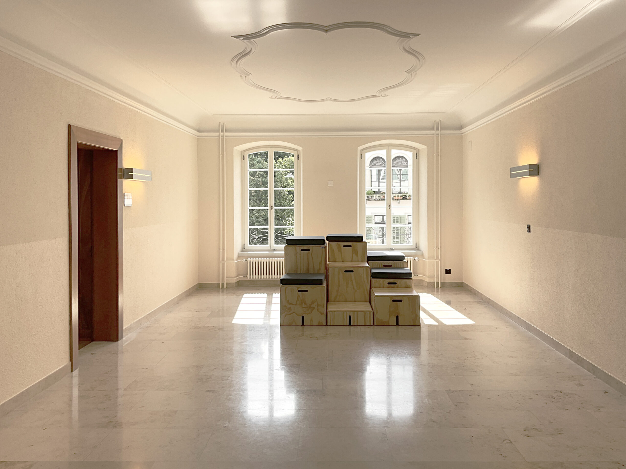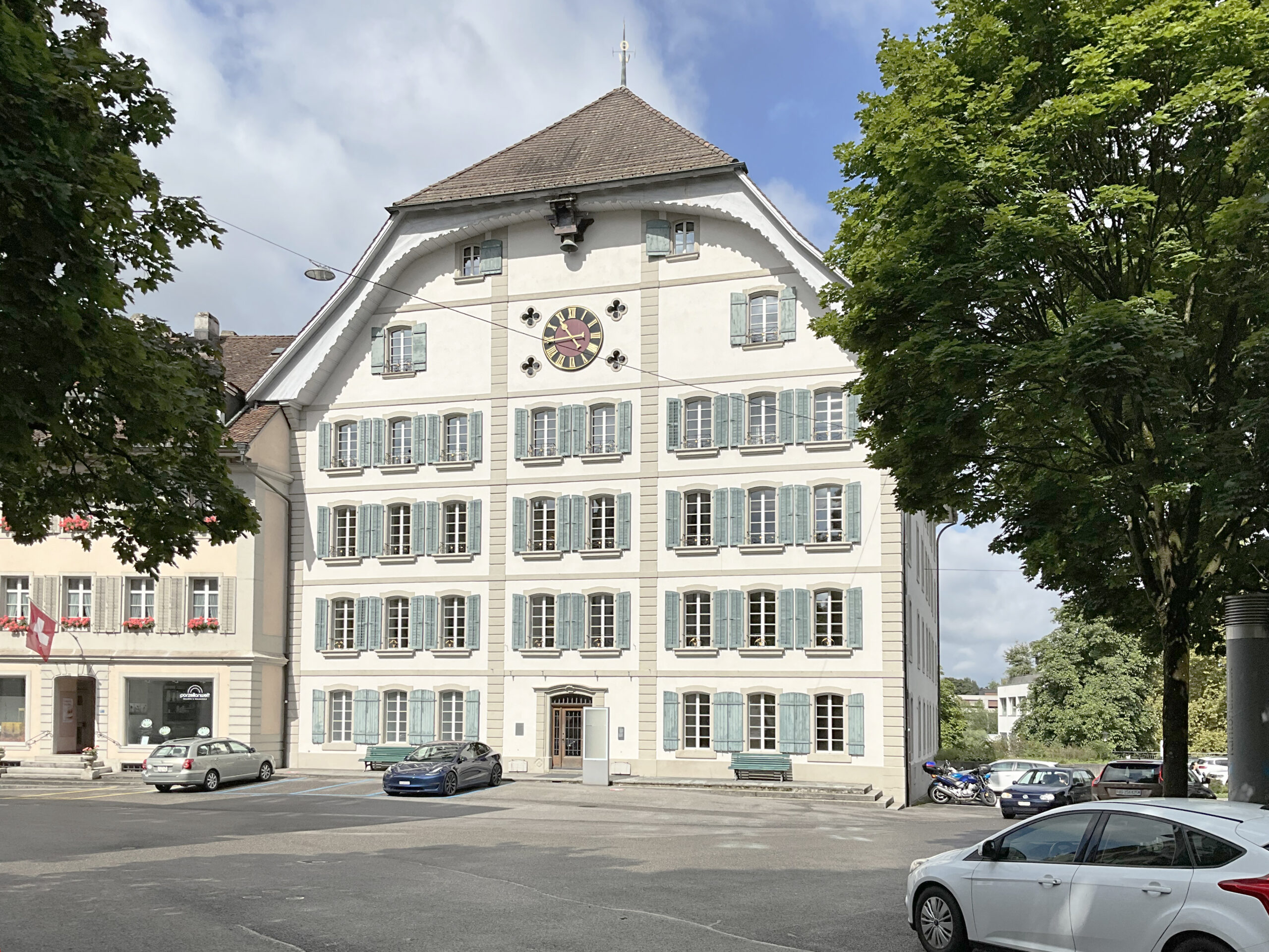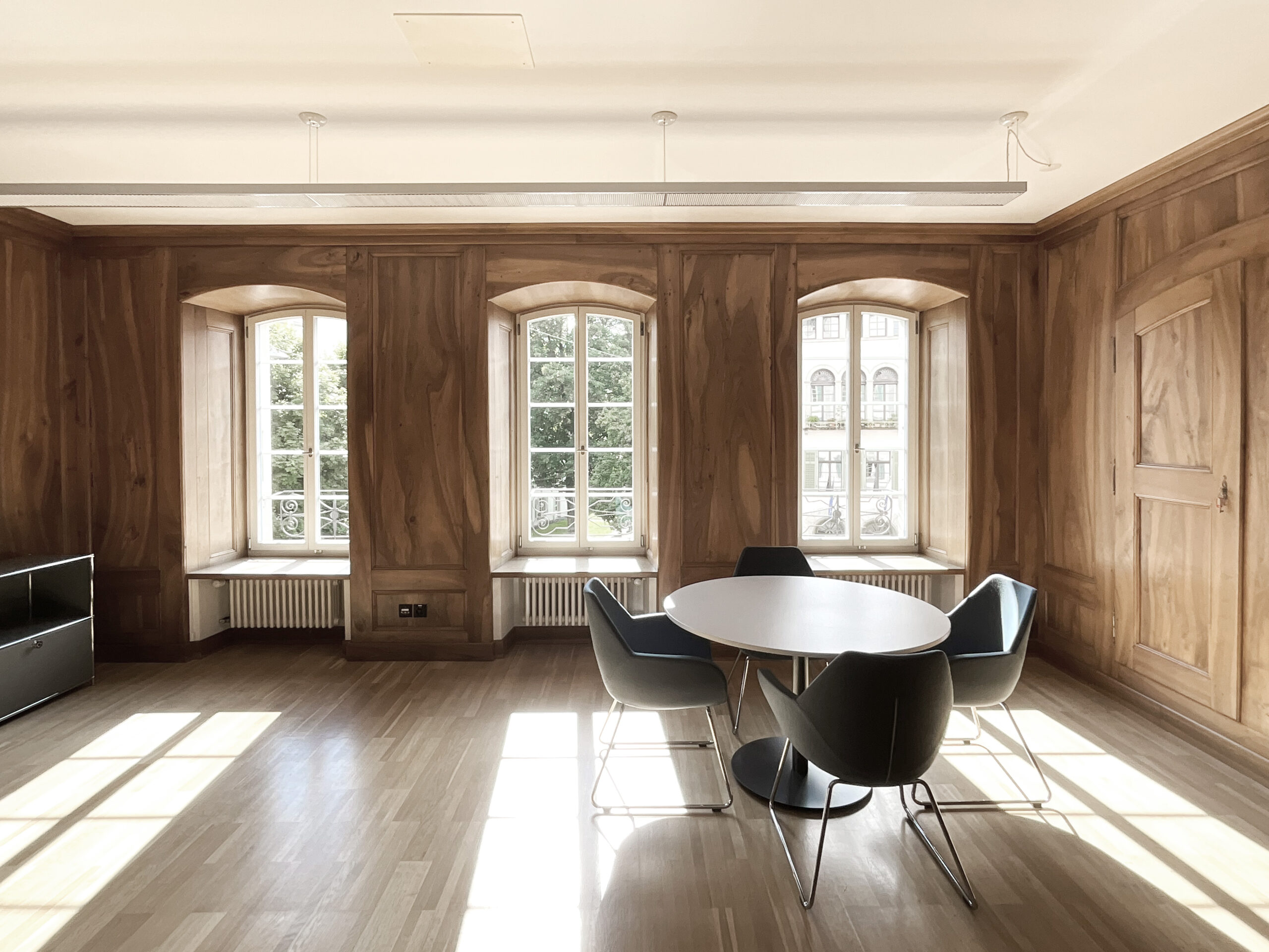 Das Hünerwadelhaus ursprünglich von der Händlerfamilie Hünerwadel als Kontor errichtet, hat eine lange Tradition als Schulgebäude, bereits seit über 100 Jahren werden hier Kinder und Jugendliche aller Altersstufen unterrichtet. Die räumlichen Voraussetzungen waren entsprechend vorhanden, der Gebäudezustand war nach der letzten Gesamtsanierung 2011 in einem akzeptablen Zustand. Entsprechend lag die Herausforderung nicht nur bei der Umsetzung der gestalterischen Massnahmen, wie Maler- und Schreinerarbeiten, Elektroinstallationen sowie kleineren Reparaturen, sondern vorallem in der Koordination und Leitung der Bauarbeiten während des laufenden Betriebs und den Sommerferien um einen nahtlosen Übergang der Nutzung als Berufsschule zu ermöglichen.